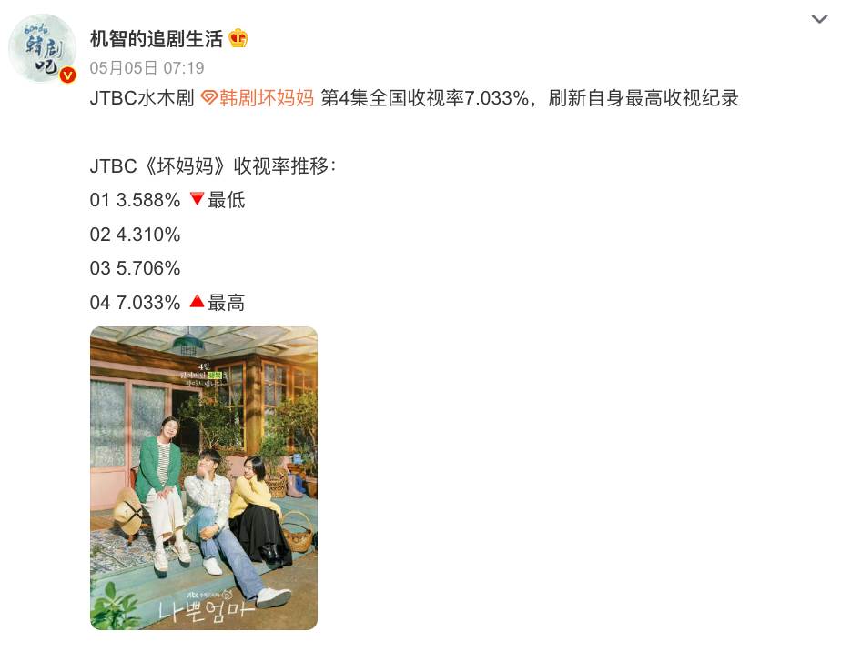 作為鎖定每周三、週四檔期的JTBC水木劇,《壞媽媽》完全憑實力吸引來一茬又一茬觀眾。