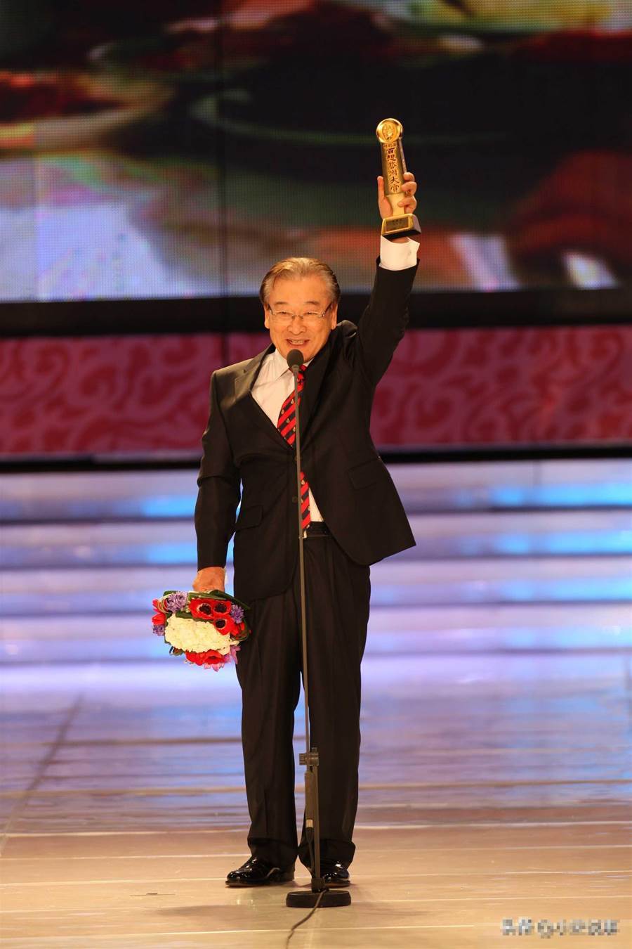 他說:「我曾演過一部長達7個半小時的話劇,那時候,每次我演出時都有一位從未缺席、默默鼓勵我的前輩。可今天,他沒能來,聽說他現在身體不太好,這位前輩就是李順載老師,真心祈愿他早日康復。」