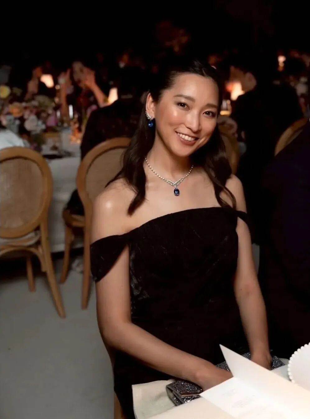 杏站在名流中間,身高一米七四的她肩頸線比珠寶還耀眼。