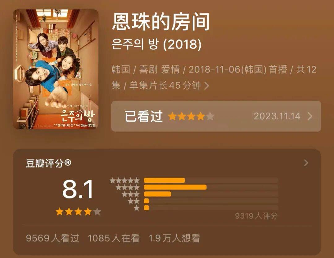 《恩珠的房間》是韓國同名網漫改編,豆瓣評分8.1分。