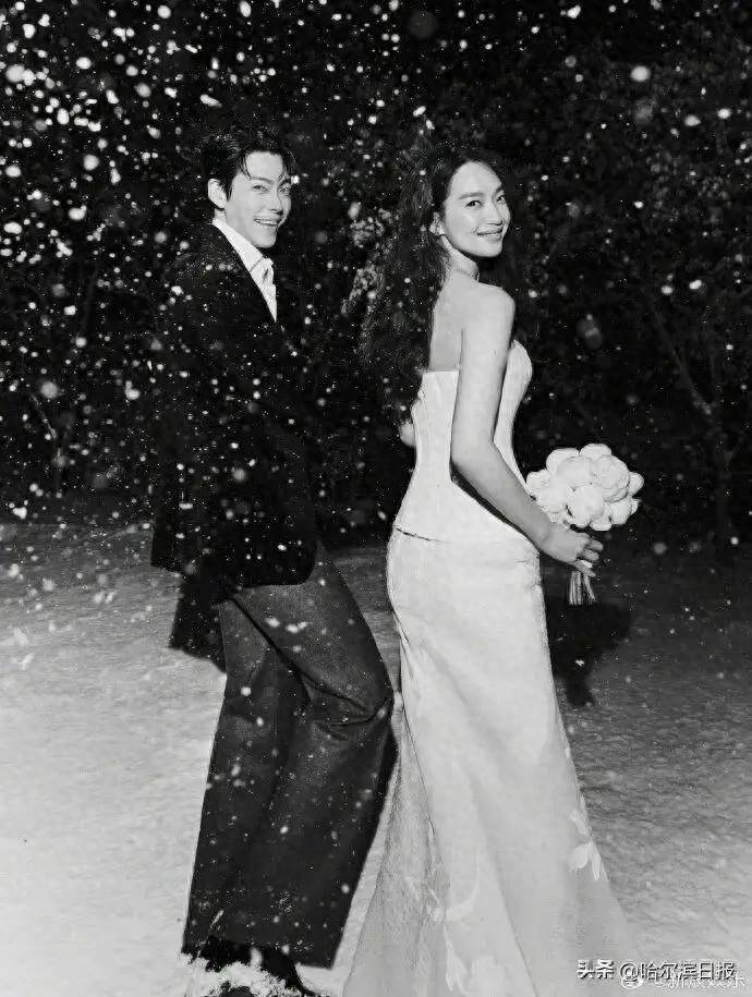 當黑白調的雪地婚照霸佔中韓社群熱搜榜,申敏兒一襲雪花意象白裙淺笑回眸,金宇彬身著黑色絲絨西裝溫柔牽手,這幀宛如電影劇照的畫面,讓全網為這場跨越十年的神仙愛情淚目。