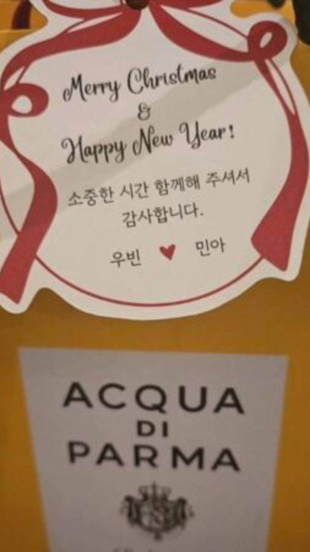 新人的心意更體現在細節裡:請柬由申敏兒手繪簡筆畫、金宇彬親筆題字,伴手禮是能栽種的香草土壤,寓意「共同滋養生活」,高階品牌定製的禮品卡片上,手寫著對賓客的真摯謝意。
