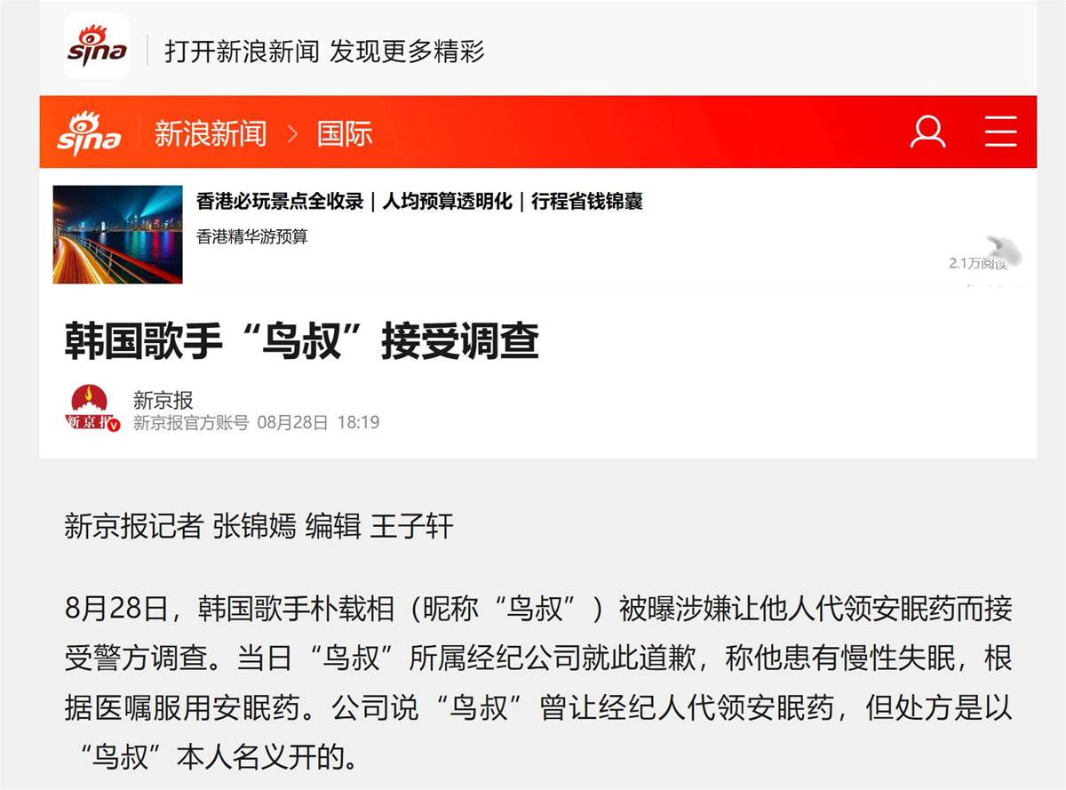 針對鳥叔及為其開具藥物的A醫生展開調查,指控兩人涉嫌違反韓國《醫療法》。
